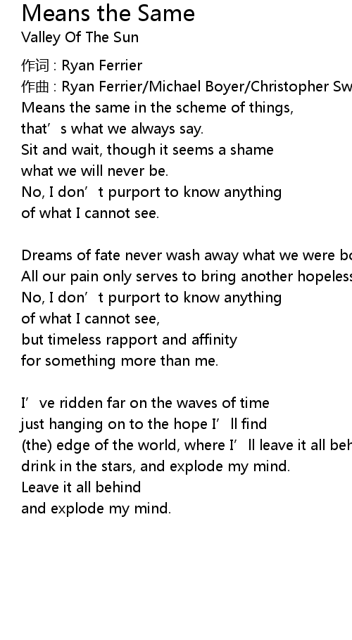 | Song | Means the Same |