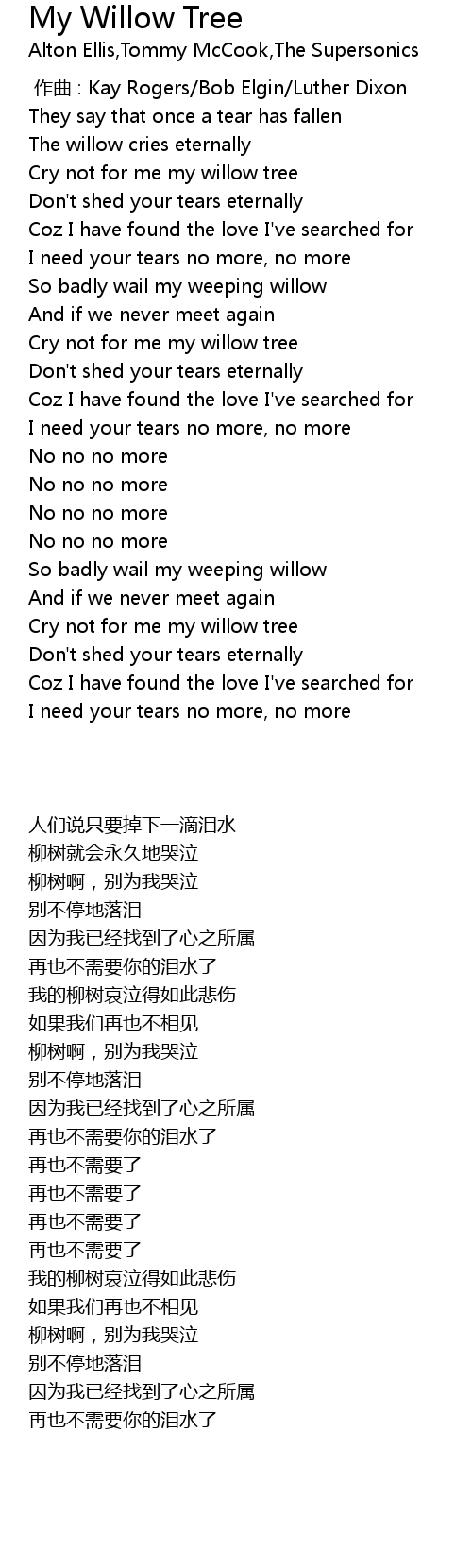 | Song | My Willow Tree |