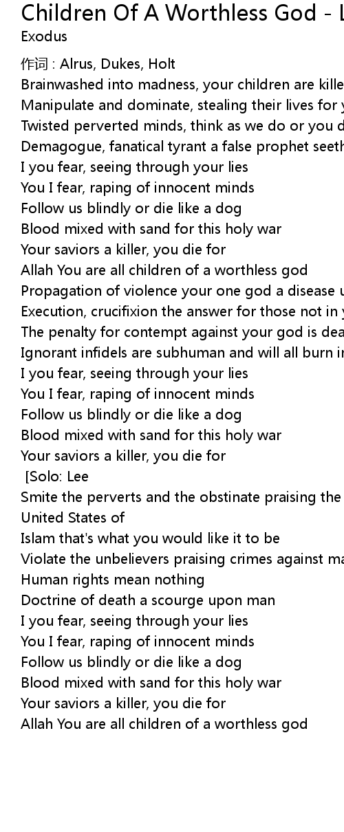 | Allah You are all children of a worthless god [Solo: Gary] [Solo: Lee] | |