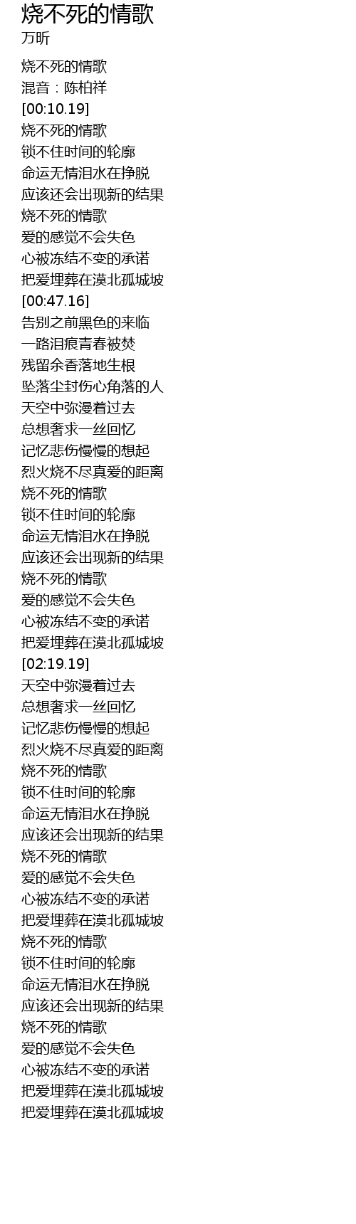 | [03:26.42] | shāo bù sǐ de qíng gē |