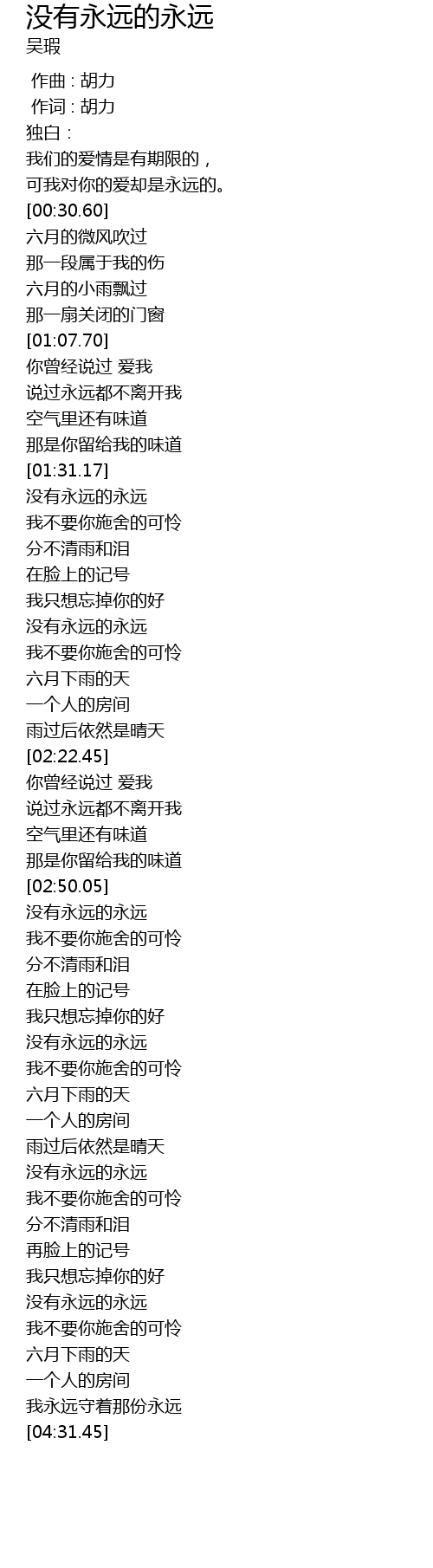 [04:04.59] 没有永远的永远