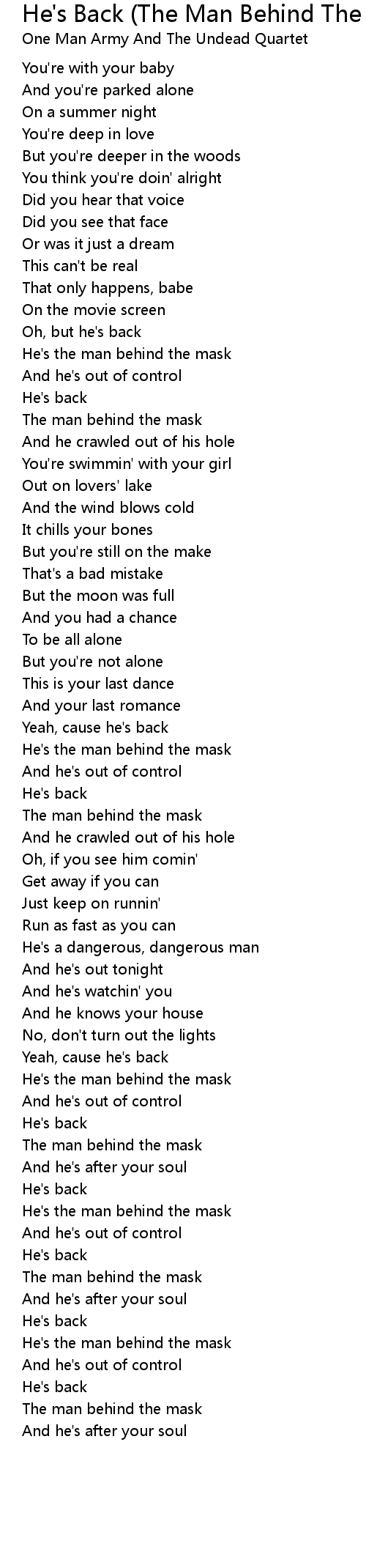Yeah, cause he's back |