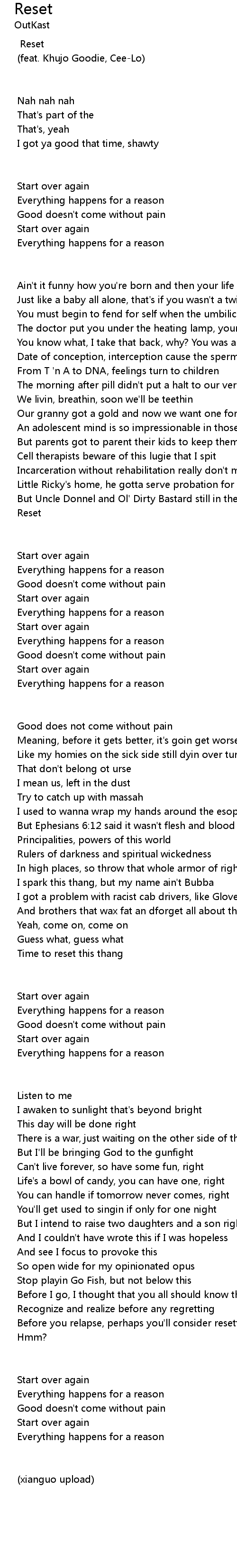 Reset Lyrics