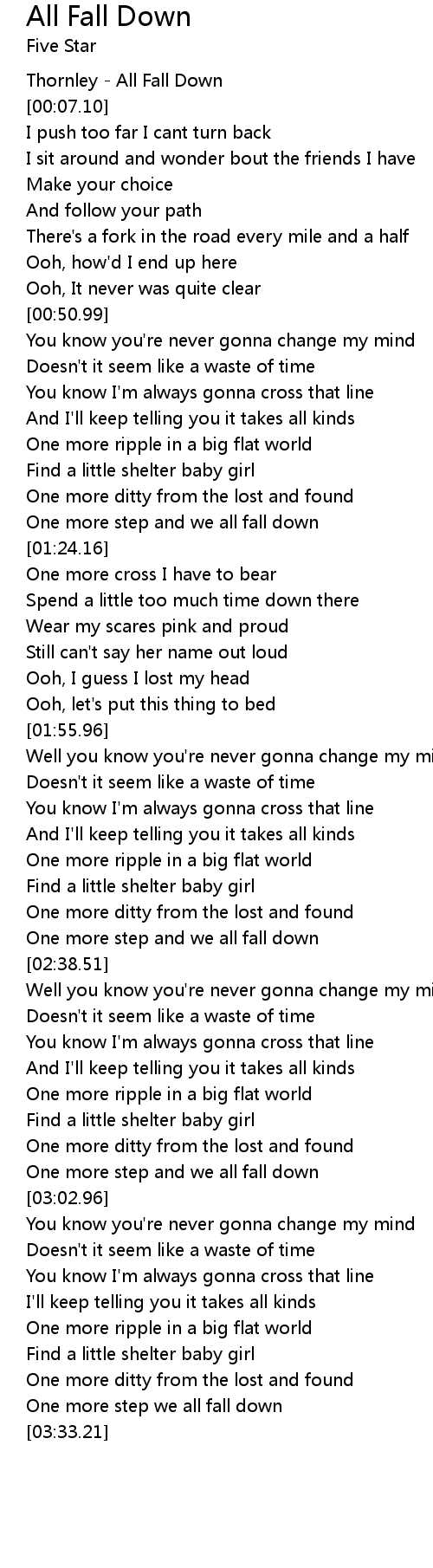 One more step we all fall down |