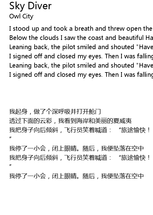 | [00:58.25] | Leaning back, the pilot smiled and shouted "Have a good trip!" |