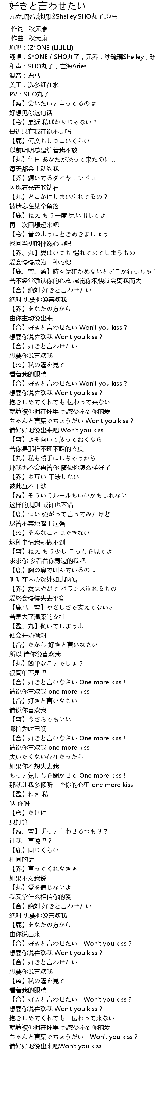 | [01:17.116] | 【合】好きと言わせたい Won't you kiss? |
