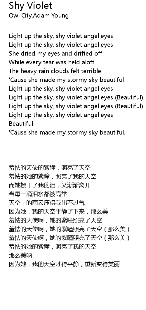 | [02:28.770] | Light up the sky, shy violet angel eyes (Beautiful) |