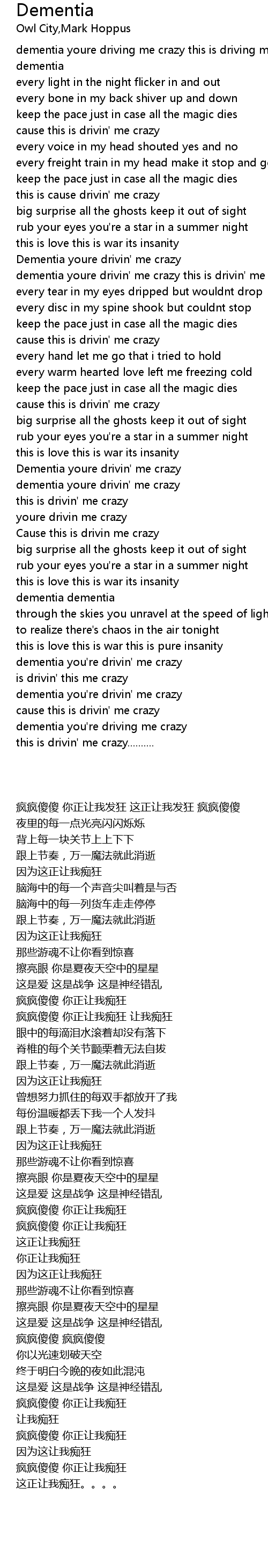 dementia youre drivin' me crazy |