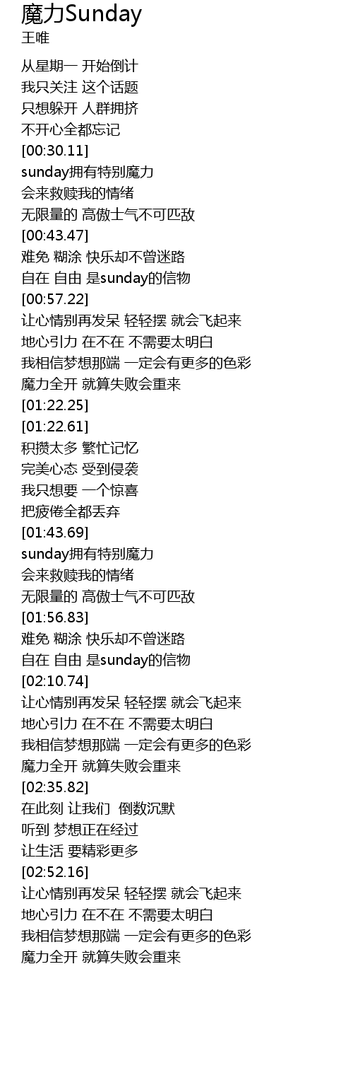 | [00:30.52] | sunday yōng yǒu tè bié mó lì |