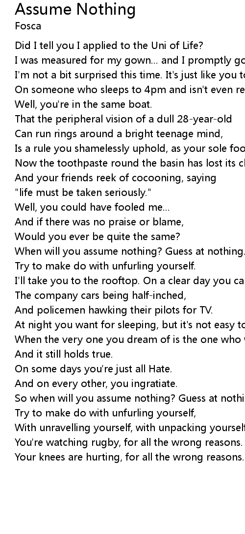 When will you assume nothing? Guess at nothing. |