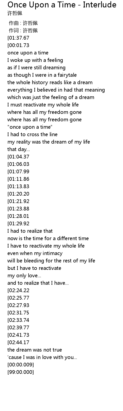 | [04:32.15][02:39.77] | once upon a time |