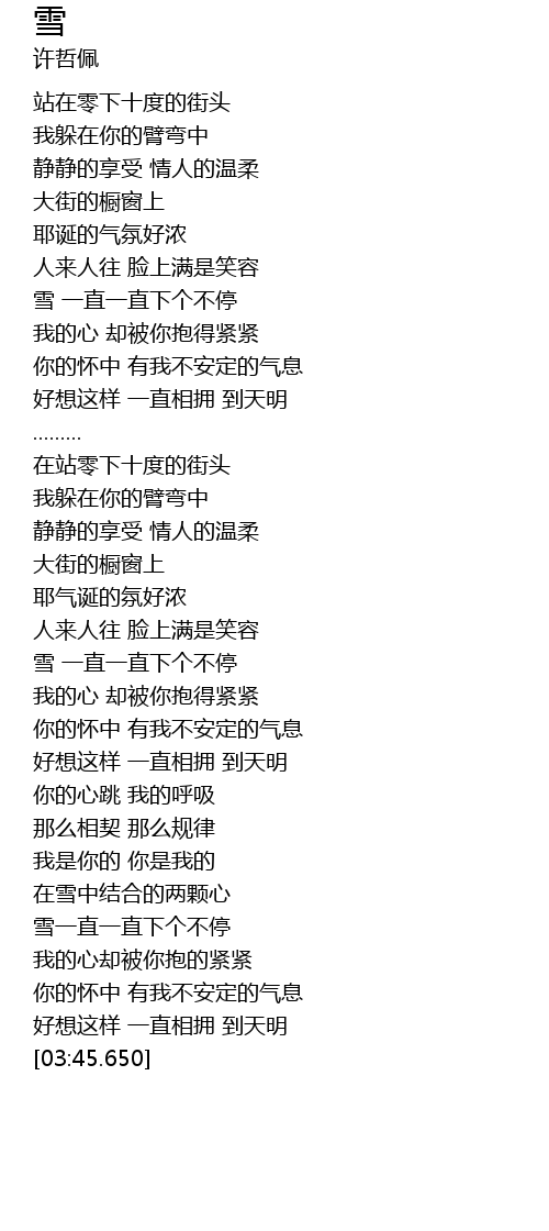 | [03:15.700] | xuě yī zhí yī zhí xià gè bù tíng |