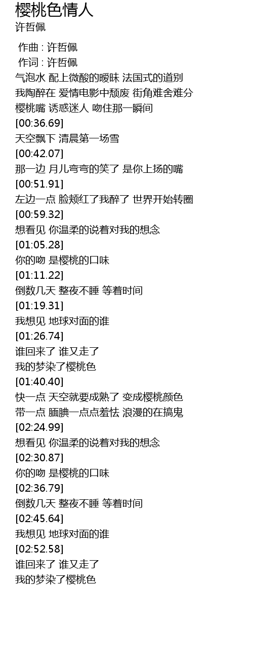 | [01:06.06] | 你的吻 是樱桃的口味 |