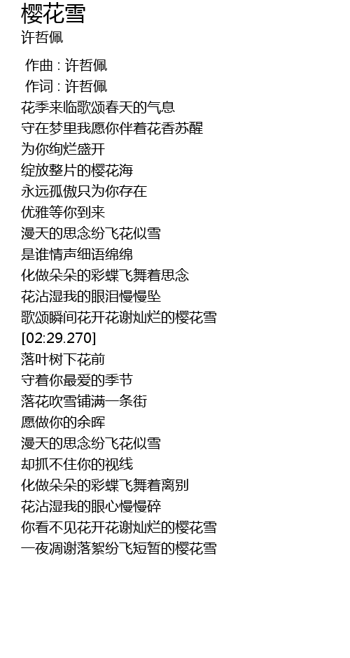 | [02:13.600] | 歌颂瞬间花开花谢灿烂的樱花雪 |