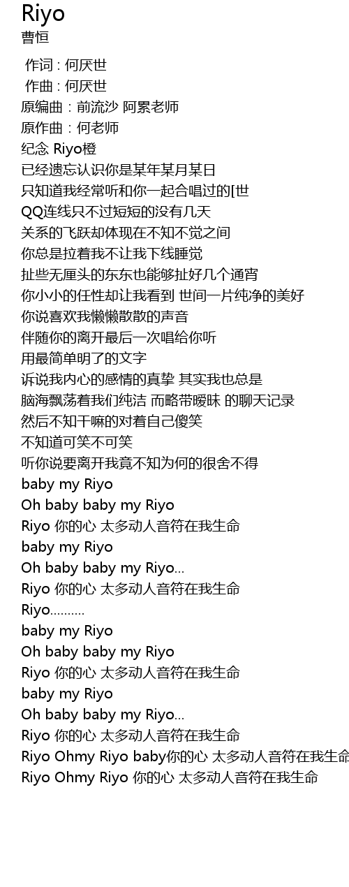 | [02:03.640] | Riyo 你的心 太多动人音符在我生命 |