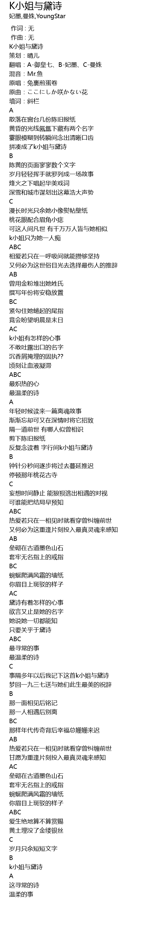 | [02:47.48] | 反复念读着 字行间k小姐与黛诗 |