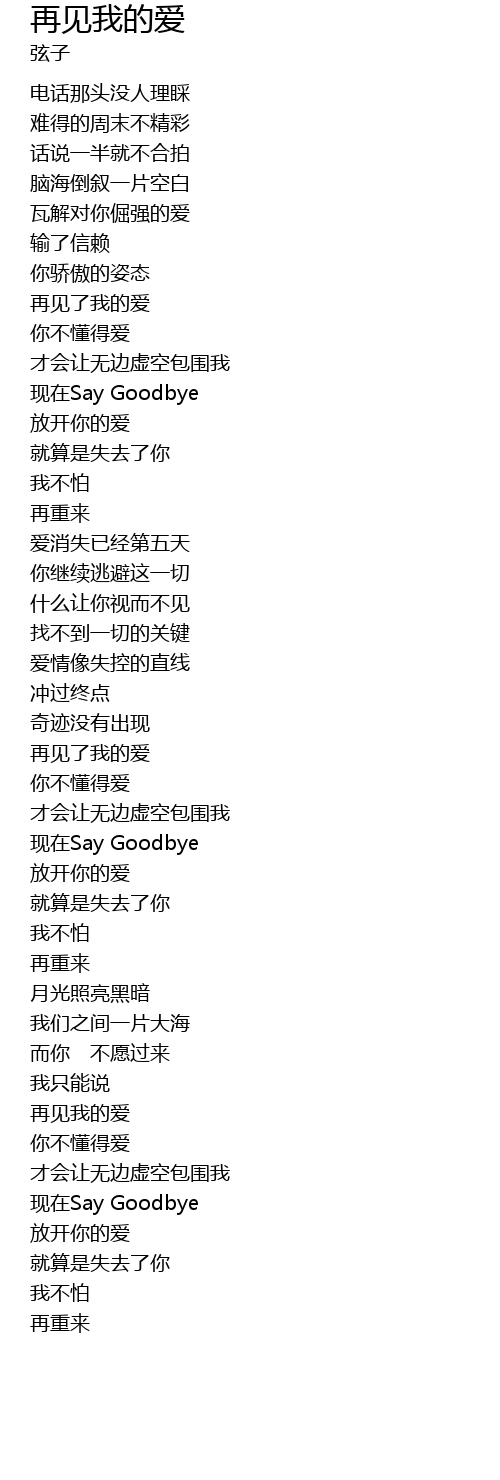 | [00:54.280] | zài jiàn le wǒ de ài |