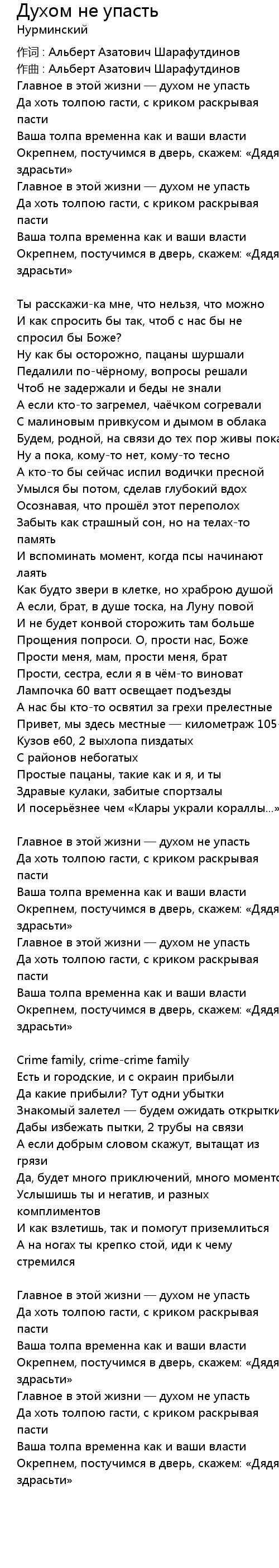 Духом не упасть  Lyrics