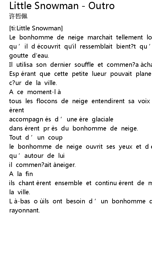| [00:19.802] | Le bonhomme de neige marchait tellement longtemps |