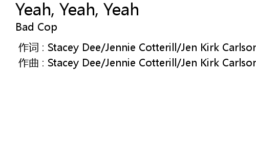 | [00:00.000] | 作曲 : Stacey Dee/Jennie Cotterill/Jen Kirk Carlson/Myra Gallarza |