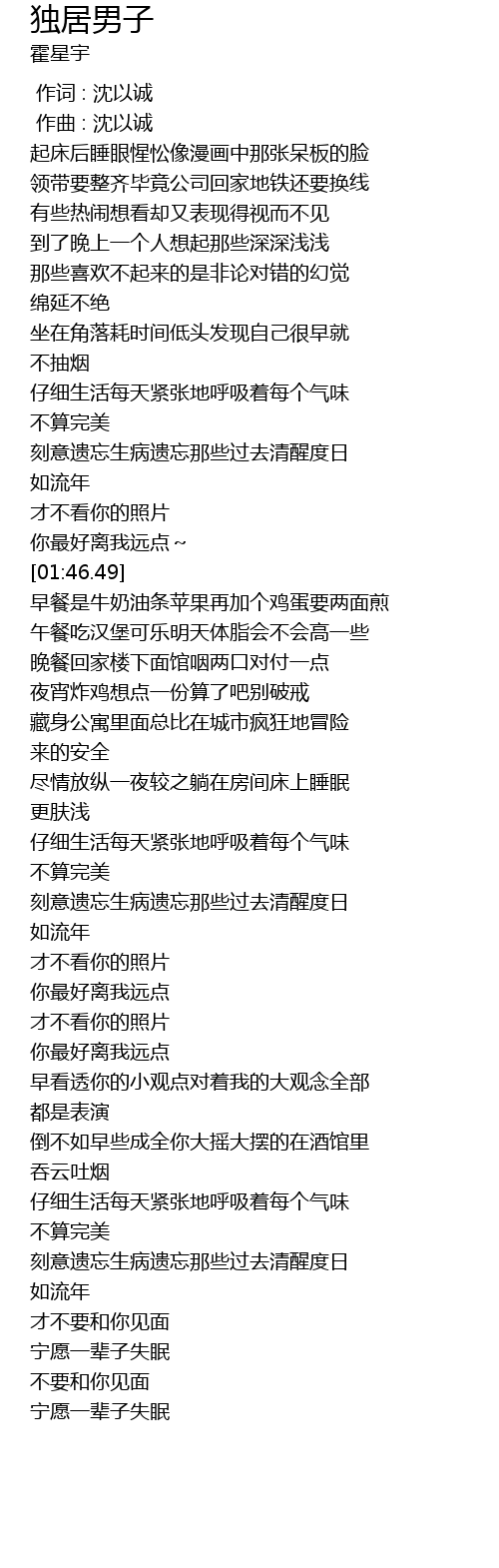 | [02:23.55] | 晚餐回家楼下面馆咽两口对付一点 |