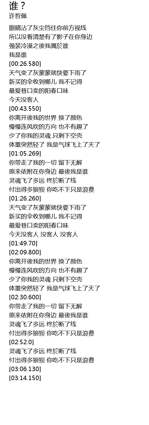 | [02:36.390] | 原来依附在你身边 最後我是谁 |