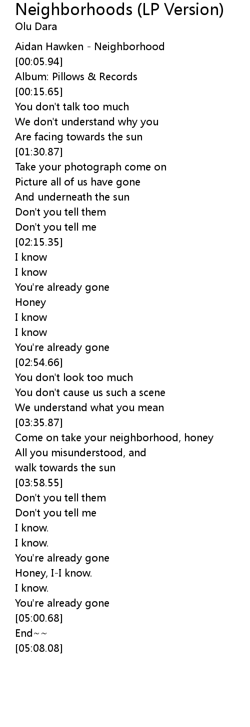 Neighborhoods (LP Version) Lyrics