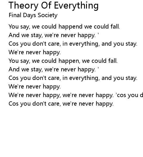 | We're never happy, we're never happy. 'cos you don't say, we're never happy. ' | |