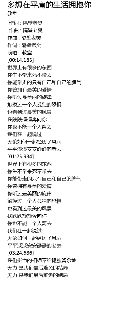 | [02:59.935] | 平平淡淡安安静静的老去 |