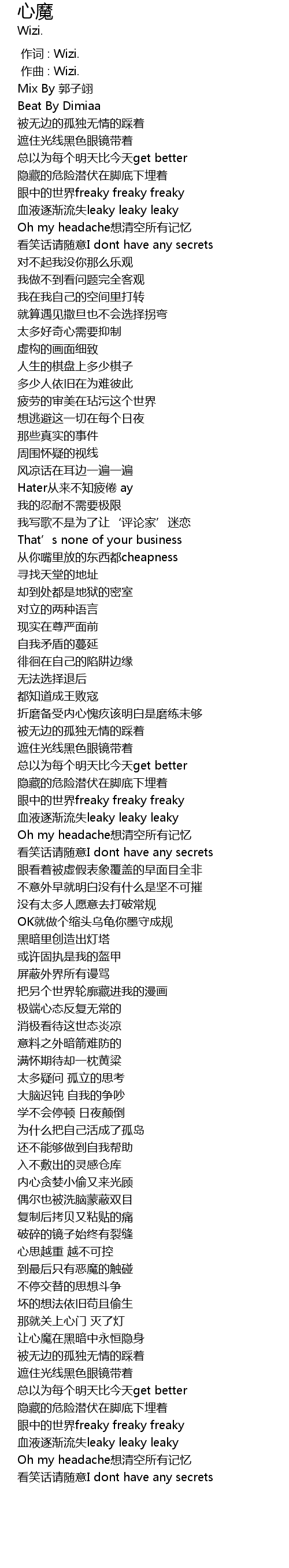 | [00:00.000] | 作词 : Wizi. |