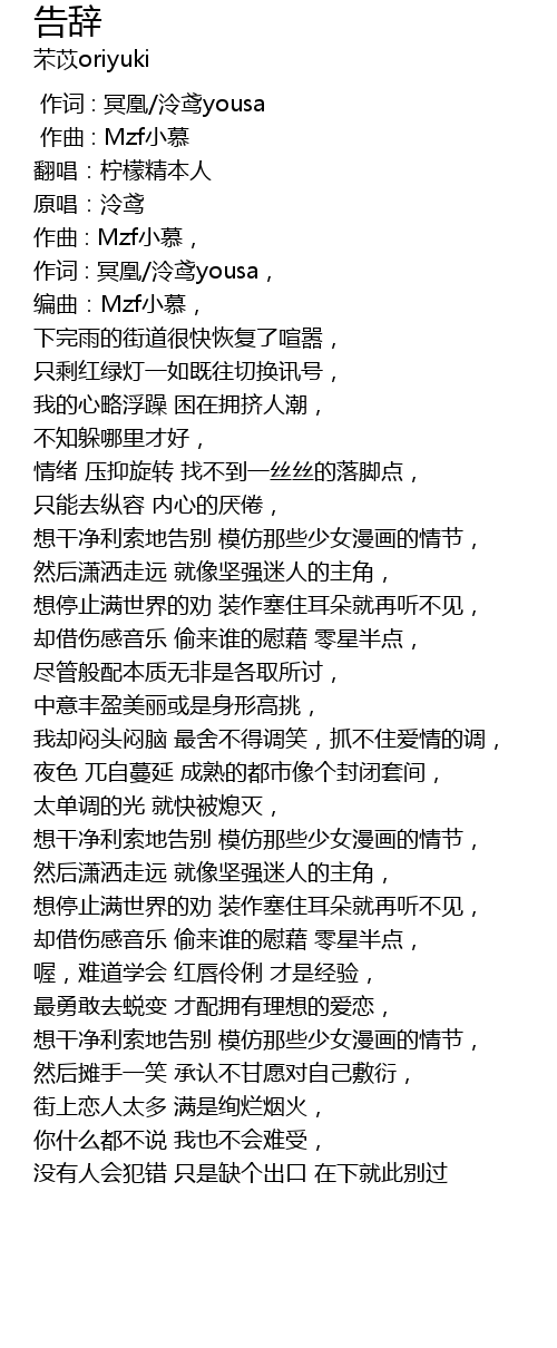 | [00:48.841] | 想干净利索地告别 模仿那些少女漫画的情节, |