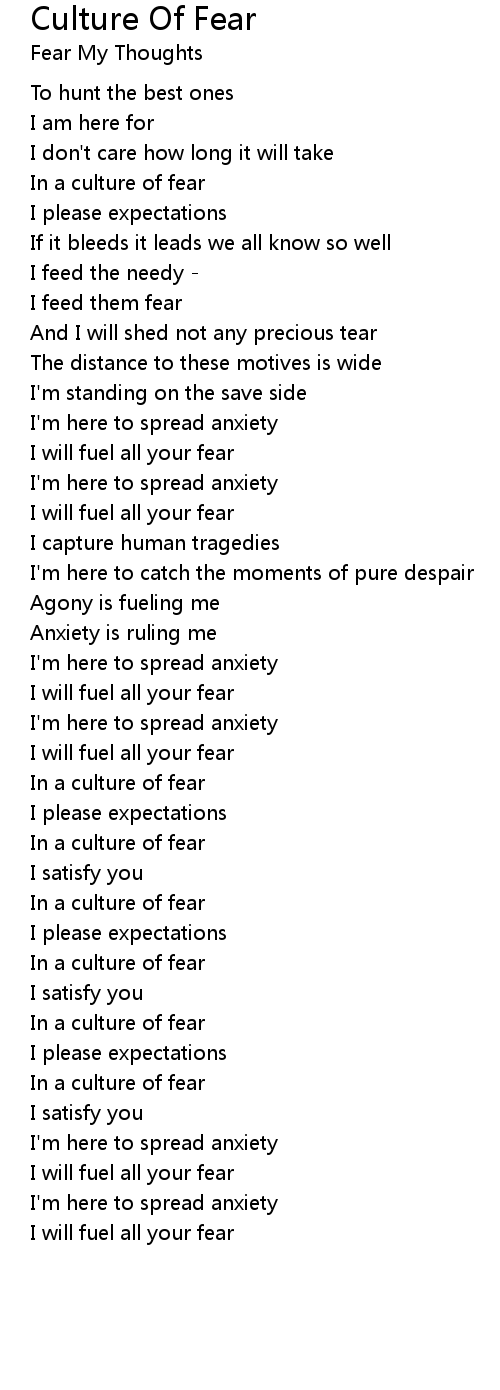 Culture Of Fear Lyrics