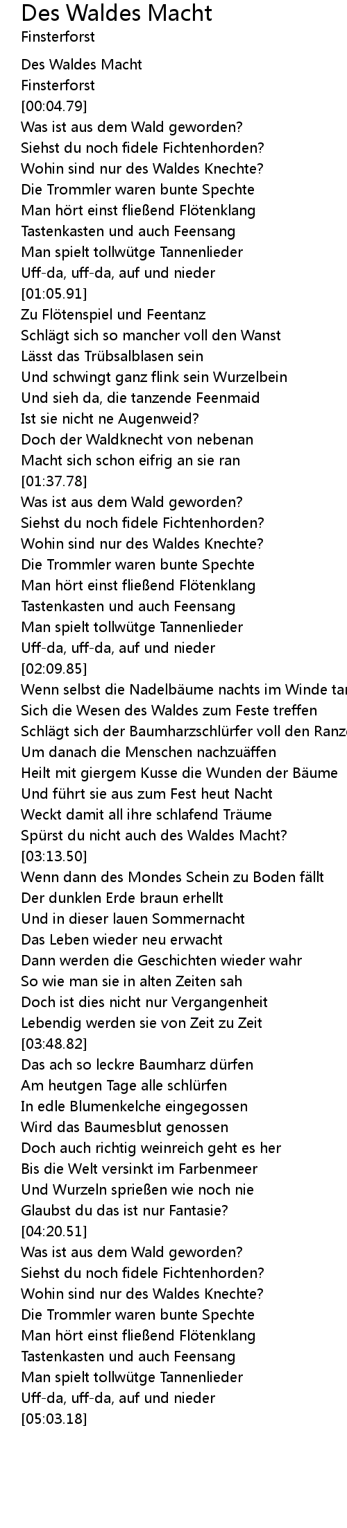 | [03:09.52] | Spürst du nicht auch des Waldes Macht? |