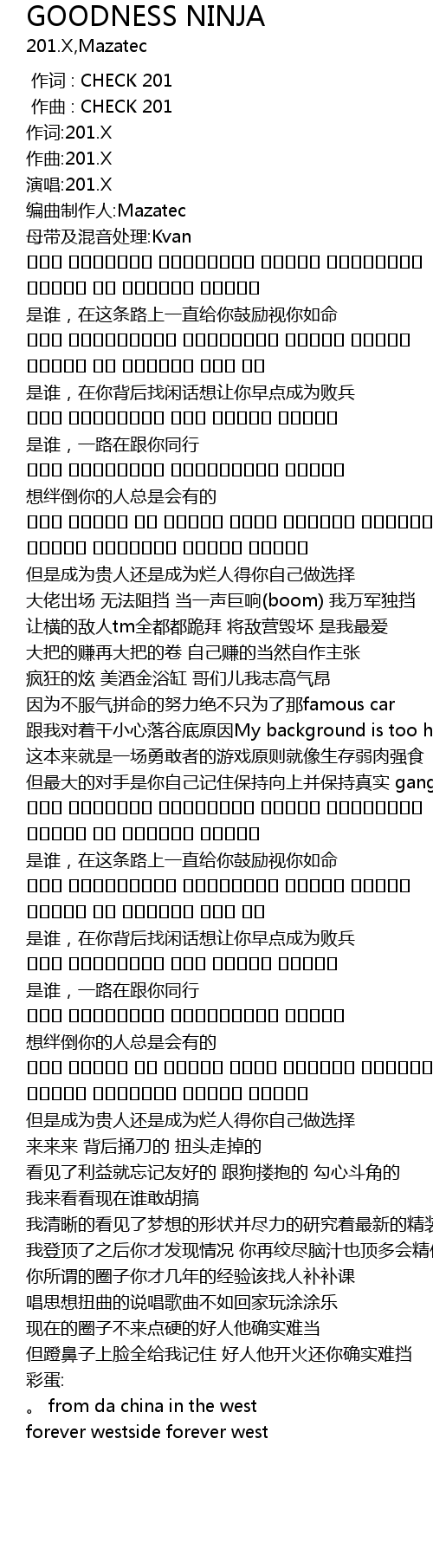 | [00:01.000] | zuò qǔ : CHECK 201 |