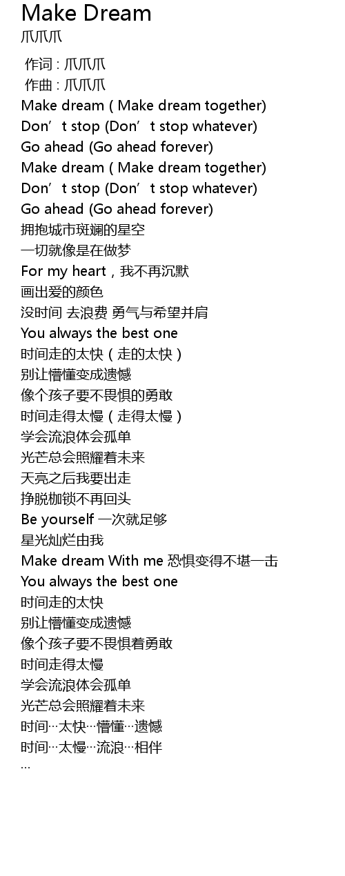 | [02:05.418] | Make dream With me kǒng jù biàn de bù kān yī jī |