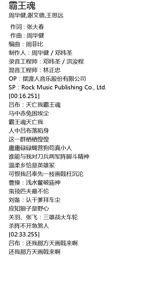 | [01:01.838] | 吕布:天亡我霸王魂 |