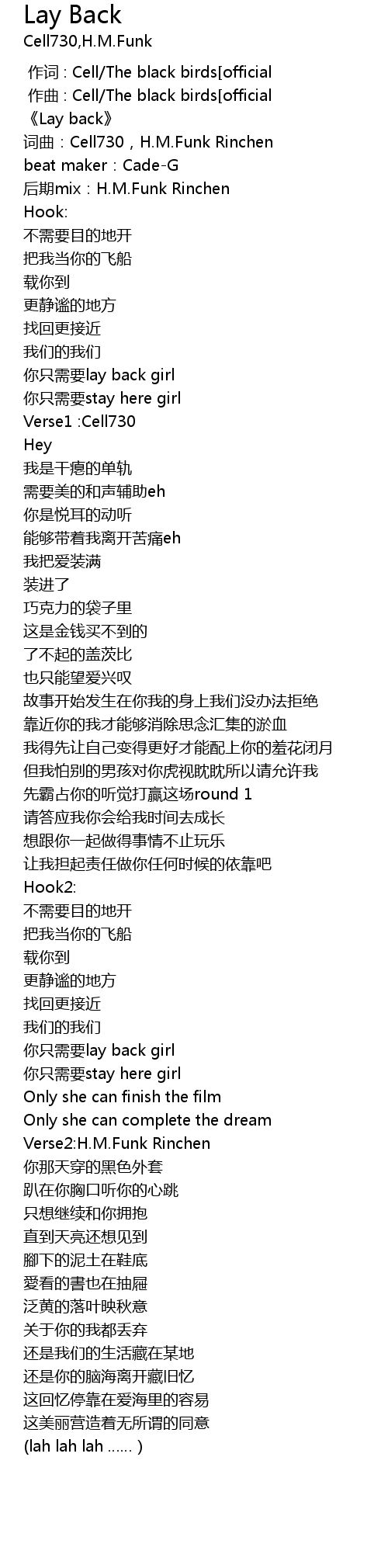 | [00:11.698] | 后期mix:H.M.Funk Rinchen |