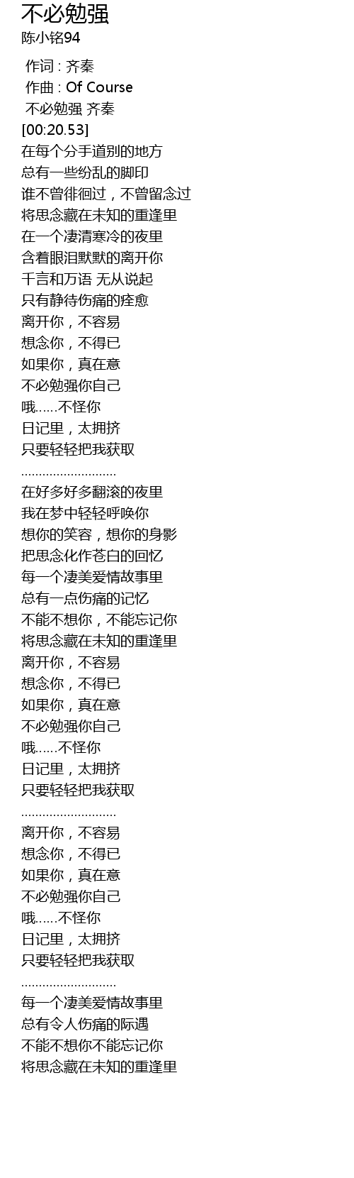 | [00:00.00] | bù bì miǎn qiǎng qí qín |