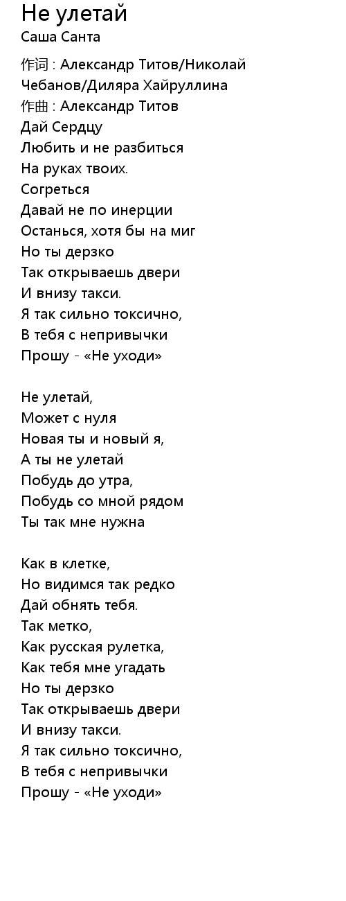 | Song | Не улетай |