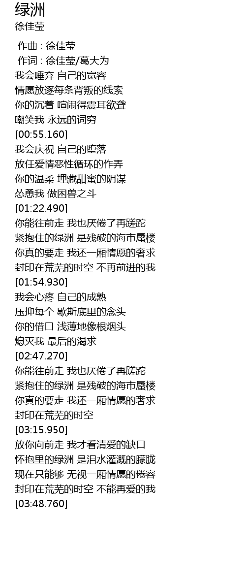 | [00:01.00] | 作词 : 徐佳莹/葛大为 |