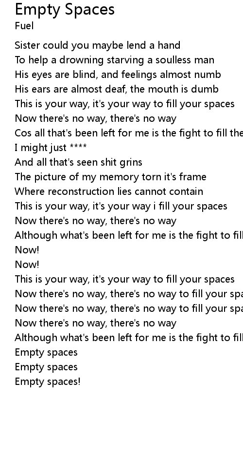 Cos all that's been left for me is the fight to fill these empty spaces now.. |