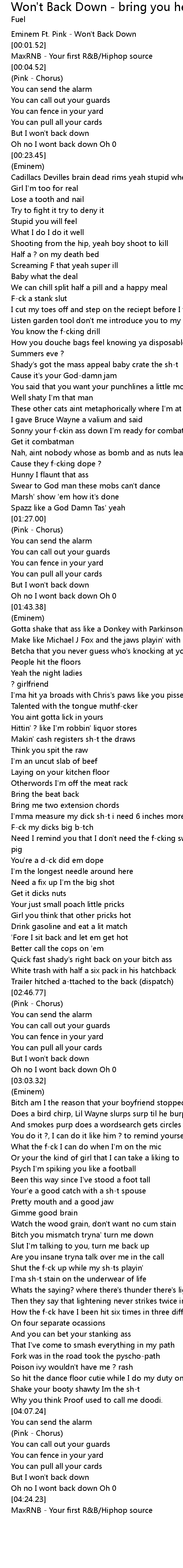 Eminem Ft. Pink - Won't Back Down |
