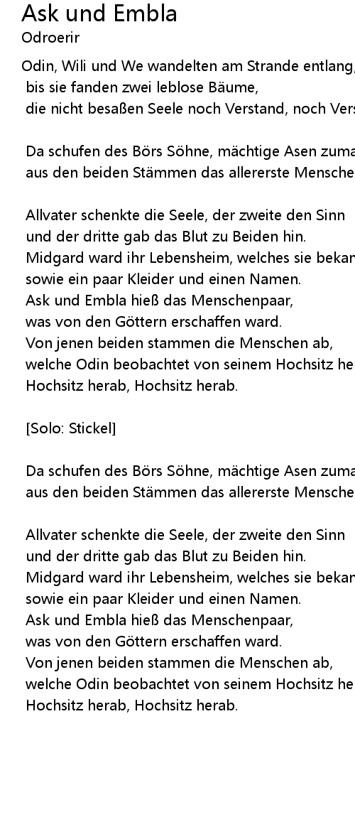| Song | Ask und Embla |