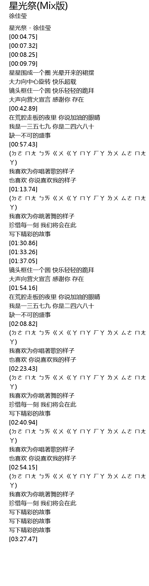 | [00:02.35] | 星光祭 - 徐佳莹 |