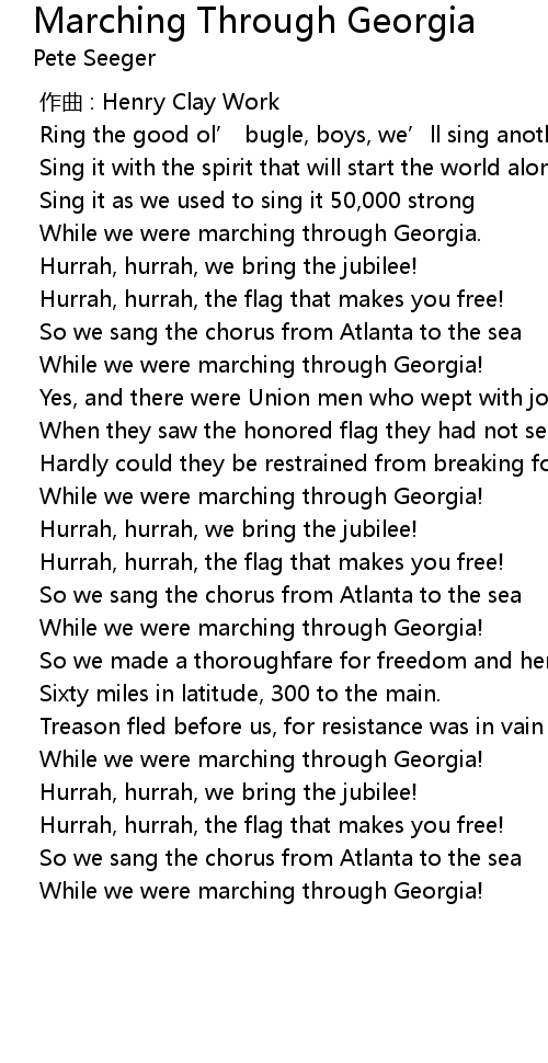 | [00:34.881] | While we were marching through Georgia! |