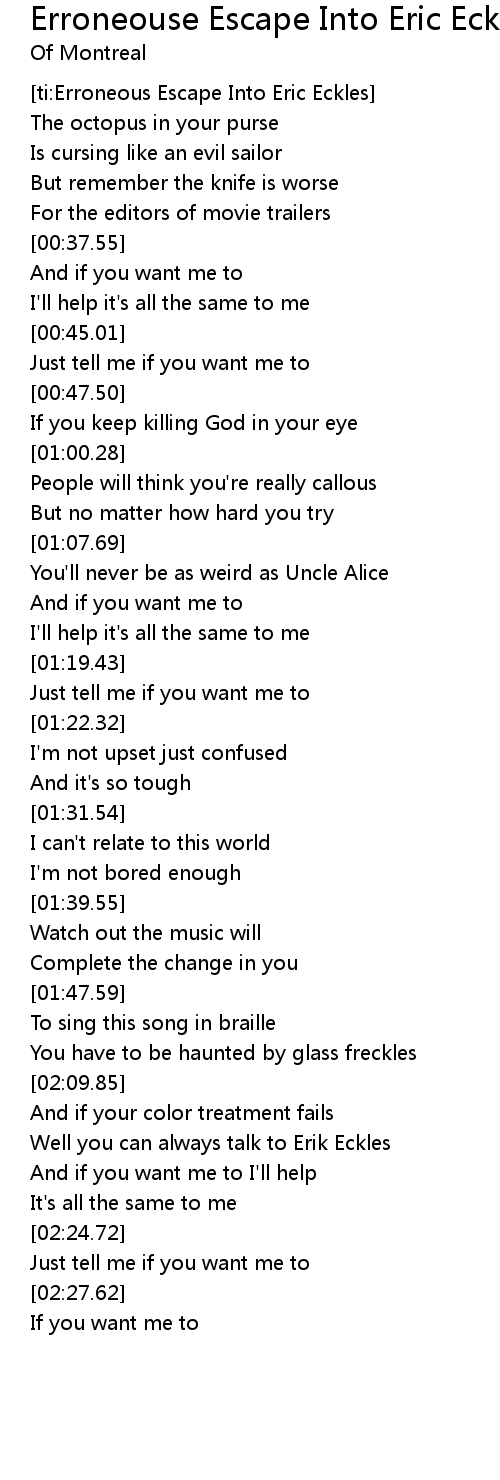Erroneouse Escape Into Eric Eckles Lyrics