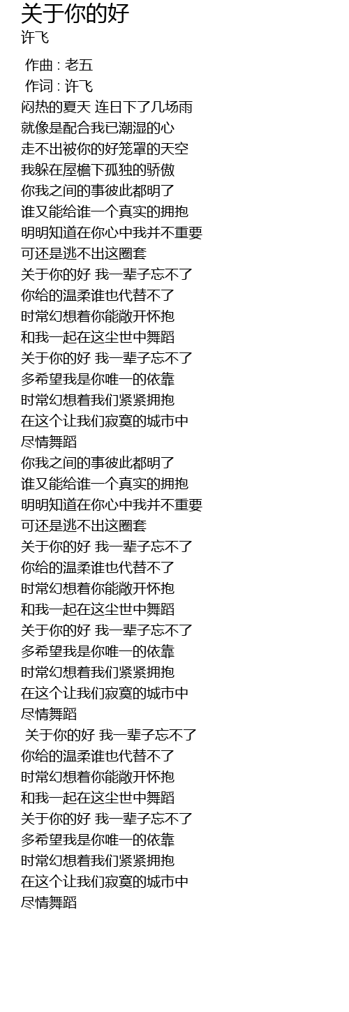 | [01:22.04] | guān yú nǐ de hǎo wǒ yī bèi zi wàng bù liǎo |