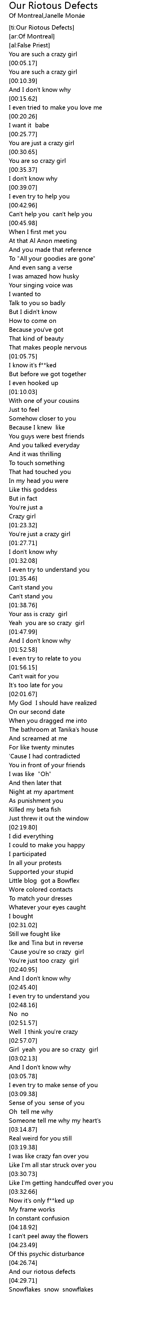 [ti:Our Riotous Defects] |