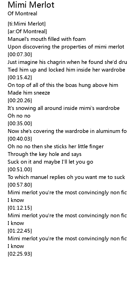 Mimi merlot you're the most convincingly non fictitious character that I know |