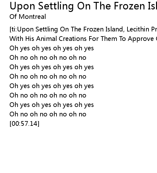 | Song | Upon Settling On The Frozen Island, Lecithin Presents Claude And Coquelicot With His Animal Creations For Them To Approve Or Reject |